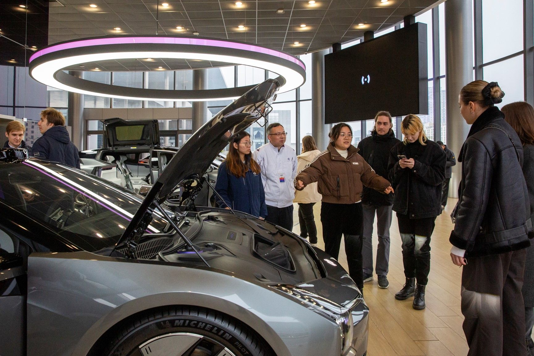 留学生先参观了悦达三工厂,该工厂采用国际先进的汽车制造设备和技术,以冲压、焊装、涂装、总装及发动机车间组成全自动生产线。在各个分车间,留学生兴趣盎然,一边聆听讲解一边仔细观察。在高合体验店,留学生们亲身体验了各种车型的乘坐感受,还观看了精彩的汽车秀。对于留学生的问题,工作人员也一一耐心介绍、回答,让大家更多的了解了汽车行业的专业知识和趣事。