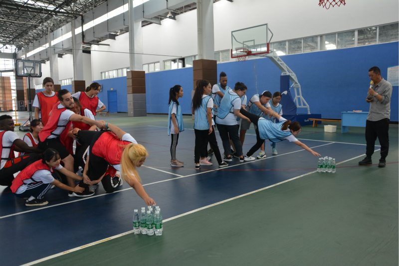 10月2日上午9时,留学生们齐聚在风雨操场参加趣味素质拓展训练。本次活动分为“群龙取水”、“水果连连看”、指压板”三个环节。来自不同国家的留学生们,通过这三个游戏增进了彼此之间的友谊,加强了相互的沟通和合作精神。