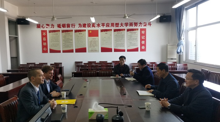 上午,在信息学院座谈会上,国合处处长介绍了我校的概况以及办学特色,信息学院院长介绍了信息学院的办学情况。西萨克森茨维考应用技术大学斯文·赫尔巴赫教授介绍了该校及信息学院概况。会上,双方就4+2本硕连读项目、教师科研合作等事宜进行了详细商谈。
