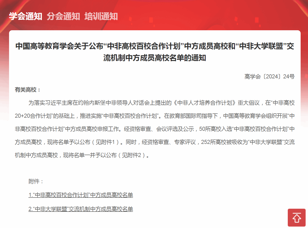 为落实习近平主席在约翰内斯堡中非领导人对话会上提出的《中非人才培养合作计划》重大倡议,搭建中非高校校际交流合作平台,推动中非高等教育共同发展,教育部国际司委托中国高等教育学会与非洲大学协会共建“中非大学联盟交流机制”,并在该机制框架下实施开展合作计划。