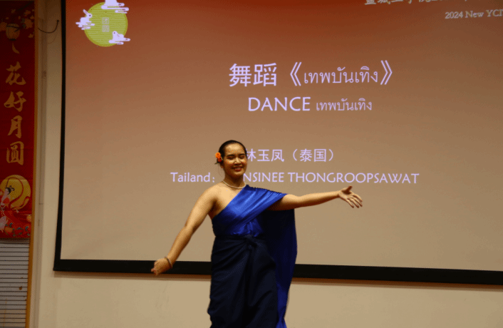 晚会由中国学生周东江和泰国学生方秋琳共同主持。来自大艺团部分中国学生和留学生们还为现场观众献上了精彩的节目。动感的K-POP开场舞一下点燃了现场的热情,拉开了晚会的帷幕。泰国学生中文合唱《有你在》,歌声甜美悦耳,观众随旋律鼓掌,沉浸其中;林玉凤身着华丽泰式舞衣,演绎异域风情舞蹈,吸引了老师和同学们一起登台互动;晚会在中国风舞蹈《破阵乐》中落下帷幕,这一舞蹈带领外国留学生们穿越到盛唐时期,体验精彩绝伦的中华文化。现场掌声、乐曲与欢呼声交织,奏出了中外文化交融的美丽乐章。