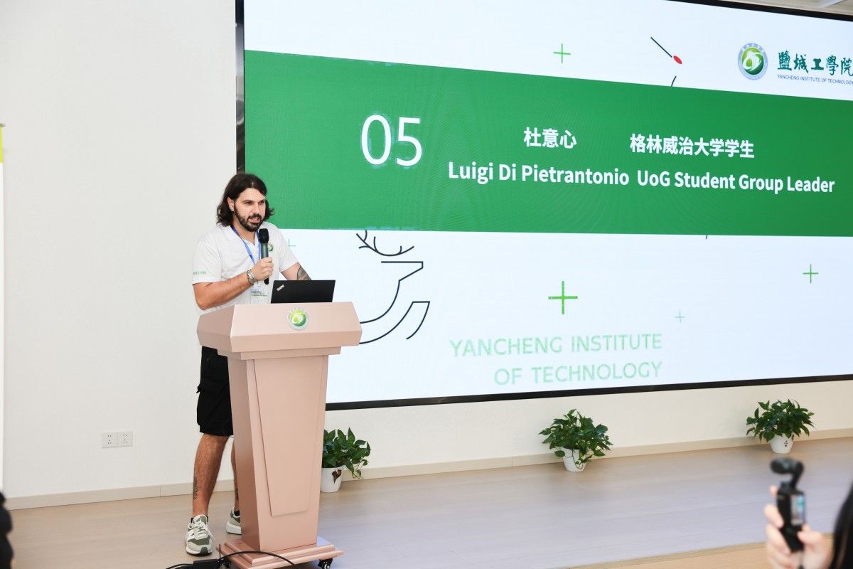 我校国合班学生代表吴宇桐和英方学生代表 Luigi Di Pietrantonio 先后发言。吴宇桐表示,非常珍惜这次与格大学生交流的机会,期待与大家分享观点、交流经验、结成伙伴,让青春的友谊恒久长存。英方学生代表 Luigi Di Pietrantonio感谢盐工提供的宝贵机会,表示将努力学习中国的语言、历史和文化,并将其带回英国,让更多人了解中国文化,并表达了对此次暑校的喜悦与期待。