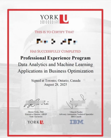 2.顶级导师全程引领:由IBM资深项目导师,技术专家及约克大学名师共同组成导师团队,提供从理论到实践的全方位指导并最终获得相应项目报告书;